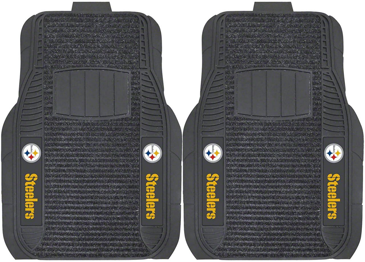Application. These Molded Front Floor Mats with officially-licensed Pittsburgh Steelers logo feature a universal design so they will fit most makes and models of vehicles. These Mats can be trimmed to fit if necessary. Sold as a set of two Front Mats.