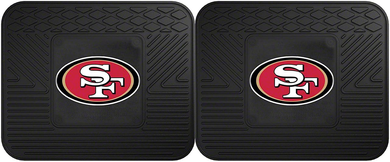 Application. These Molded Rear Floor Mats with officially-licensed San Francisco 49ers logo feature a universal design so they will fit most makes and models of vehicles. Sold as a set of two Mats.