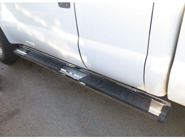 Solid Construction. These running boards are made of premium-grade stainless steel that promises not to rust or corrode. It has a bright silver finish that adds attractive look to your ride. For your safety and ease, the step pads on these running boards are made of durable polyethylene providing great traction for quick and easy vehicle entry and exit.