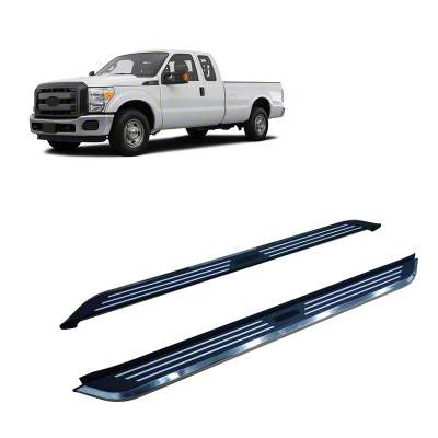 Application. The Pinnacle Running Boards; Black and Silver are designed to fit 2011-2016 Ford F-350 Super Duty Super Cab models.