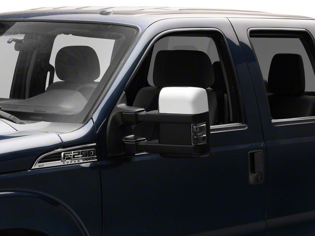 OEM Style Replacement Towing Mirrors. Replace your F-350 Super Duty's cracked or broken towing mirrors with a brand new OEM style replacements. These power telescoping, power folding and power-operated towing mirrors are designed to replace the heated mirrors found on 2011-2016 Ford F-350 Super Duty models equipped with memory function, temperature sensor, and mirror mounted turn signals.