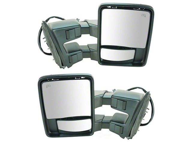 OEM Style Replacement Towing Mirrors. Replace your F-350 Super Duty's cracked or broken towing mirrors with a brand new OEM style replacements. These manual telescoping, power folding and power-operated towing mirrors are designed to replace the heated mirrors found on 2011-2016 Ford F-350 Super Duty models equipped with temperature sensor, and mirror mounted turn signals.