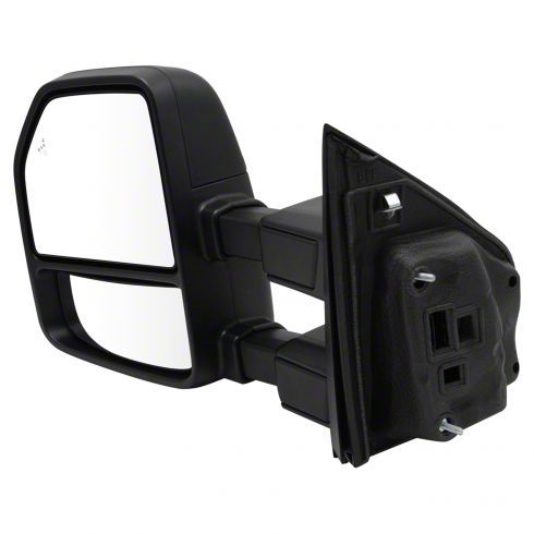 OEM Style Replacement Towing Mirror. Replace your F-350 Super Duty's cracked or broken towing mirror with a brand new OEM style replacement. This manual telescoping, manual folding and power-operated towing mirror is designed to replace the heated driver side mirror found on 2017-2018 Ford F-350 Super Duty models equipped with spotlight, blind spot detection, and mirror mounted turn signals.