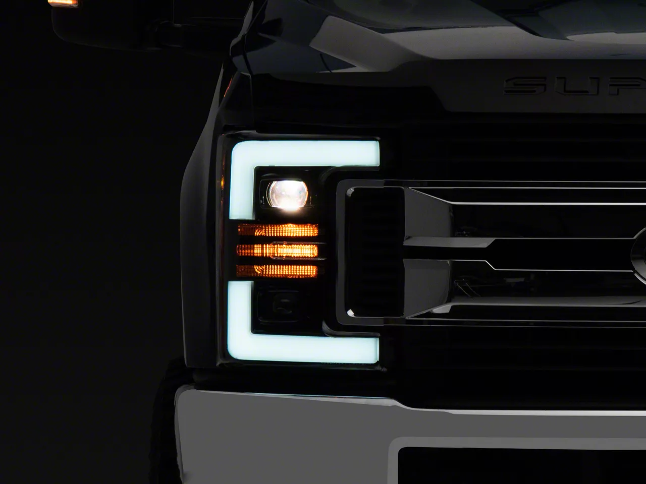 Application. These PRO-Series Jet Black Projector Headlights fit all 2017 to 2019 Ford F-350 Super Duty models with halogen headlights.