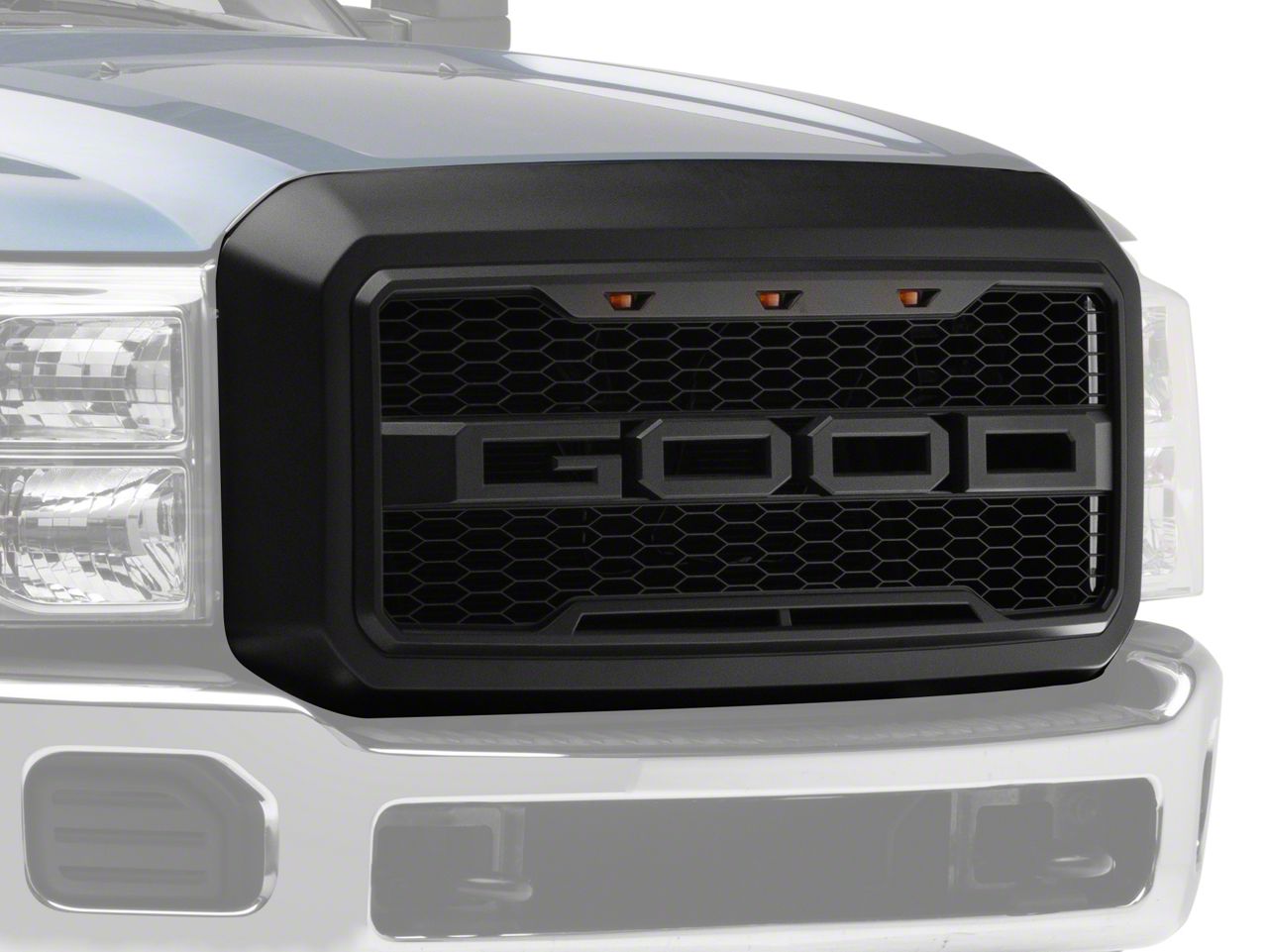 Front-End Styling. This Raptor Style Upper Replacement Grille will instantly transform the front end of your Super Duty, but also improve airflow to the radiator and help the cooling process. The Grille looks great with "GOOD" spelled across the middle.