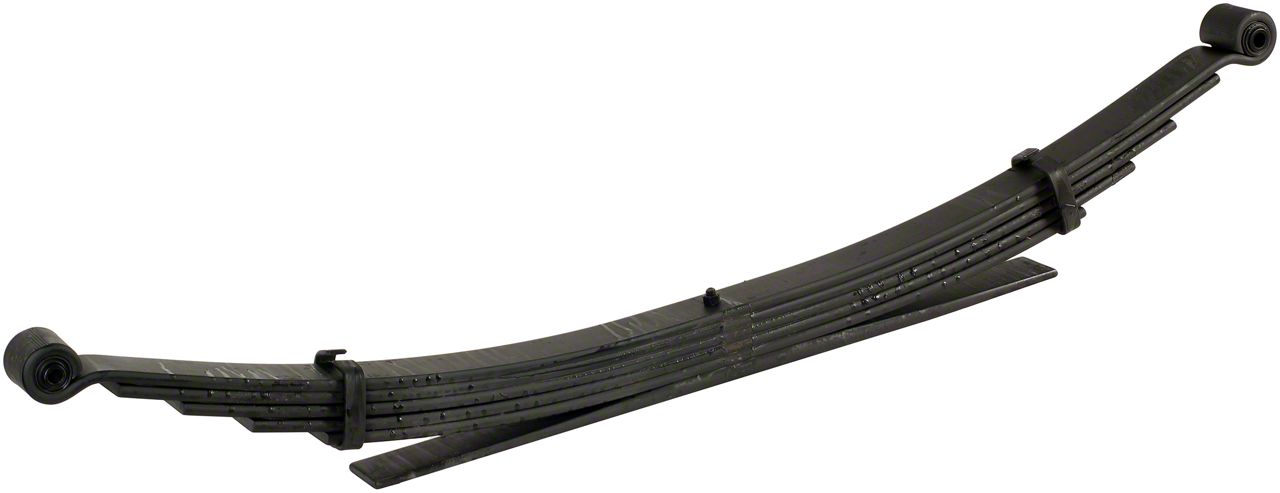 Construction and Features. Crafted with a durable matte black finish, this rear leaf spring is built to withstand heavy loads and harsh conditions. Its OE-compatible design ensures a seamless replacement, while its high-quality materials deliver long-lasting performance. Furthermore, with its robust construction, this leaf spring provides improved ride stability and minimizes rear-end sag during heavy-duty tasks.
