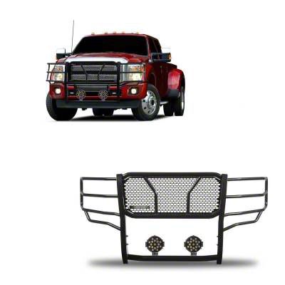 Application. The Rugged Heavy Duty Grille Guard with 7-Inch Black Round Flood LED Lights fits all 2011-2016 F-350 Super Duty models.