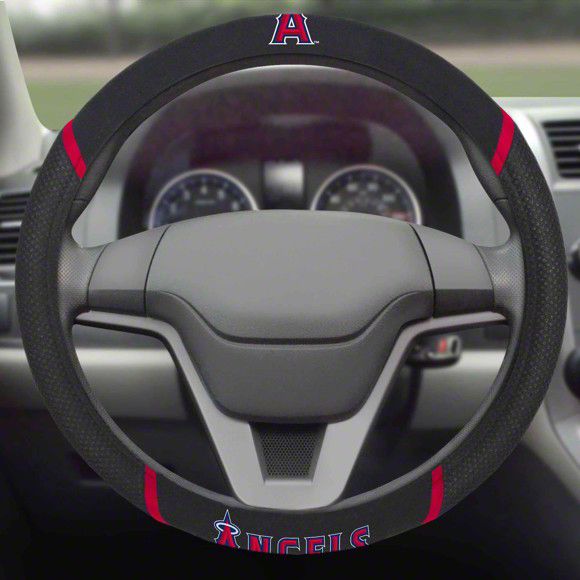 Show Your Team Pride. The Steering Wheel Cover with Los Angeles Angels Logo adds a touch of team spirit to your vehicle's interior. This cover features the officially licensed Los Angeles Angels logo and team name embroidered on the cover, showcasing your support for the team.