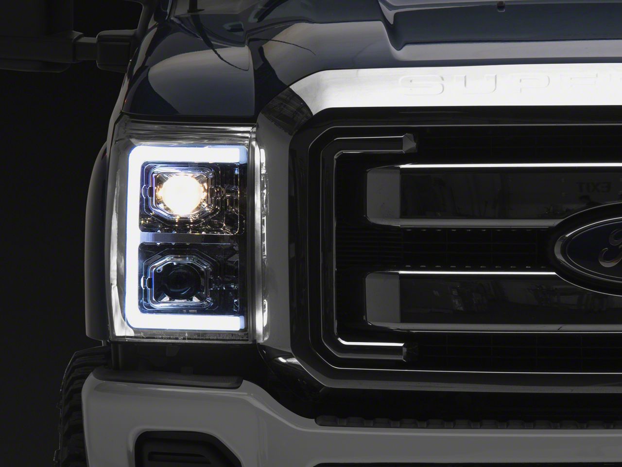 Application. This Switchback Sequential LED C-Bar Projector Headlights; Chrome Housing; Clear Lens fits all 2011-2016 F-350 Super Duty models.