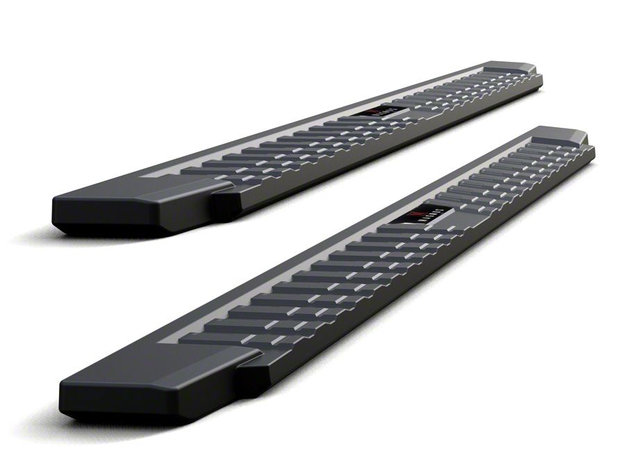 Wear-Resistant Build Quality. These running boards feature a one-piece construction from high-grade carbon steel, making these a stronger step option for your truck. This construction also offers a precise fit and ideal rigidity. Likewise, the polyethylene treads provide excellent traction at any point of the board by covering the whole platform. Finally, these boards are finished in a durable black powder coating for superior corrosion protection.