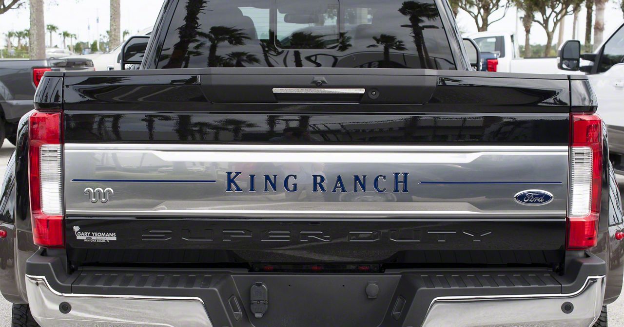 Application. These Tailgate Insert Letters; Blue Jeans Metallic are designed to fit 2017-2019 Ford F-350 Super Duty King Ranch models.
