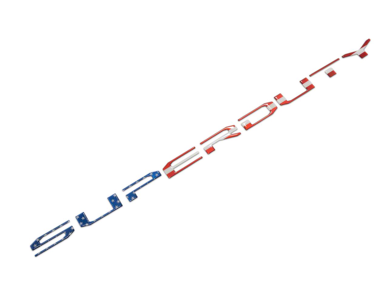 Personalize and Patriotize in Style. Showcase your patriotism and personalize your F-350 Super Duty (excluding Platinum models) with these eye-catching Tailgate Letter Inserts, featuring an officially licensed American flag design. Crafted for durability, these inserts are built to withstand the elements and maintain their vibrant appearance.