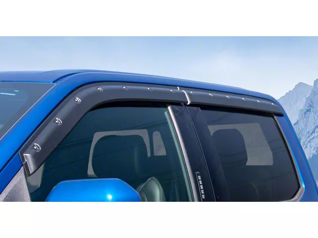 Rugged Protection. Complete your SuperCrew’s aggressive look with these Tough Guard FormFit Window Visors. Drawing from the design of rugged aftermarket fender flares with their Torx style bolt heads, these visors raise the bar in the off-road appeal for pickup trucks. Indeed, these FormFit Window Visors let you confidently roll down your window as you drive with style.