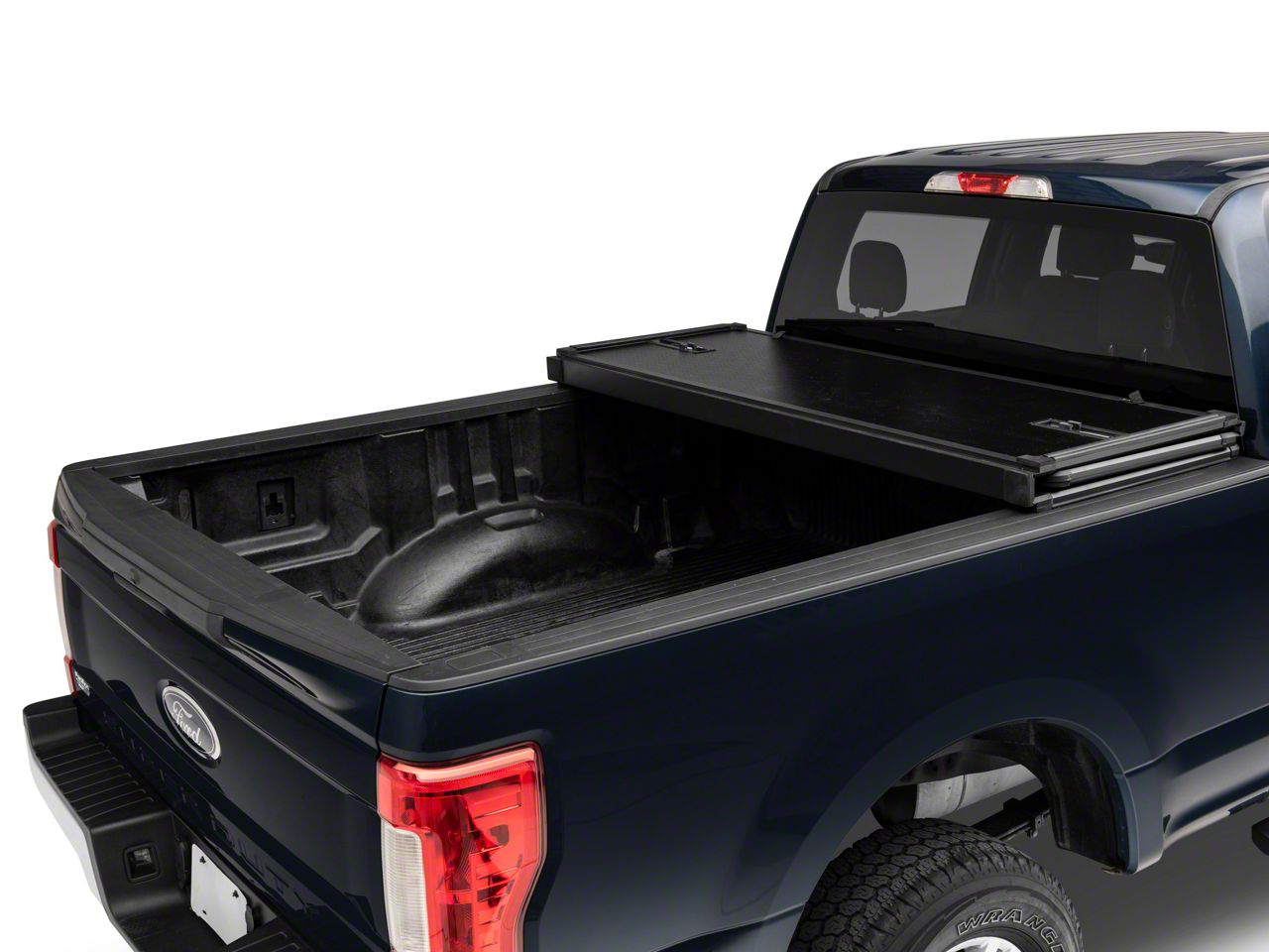 Cargo Protection. Install a Tri-Fold Hard Tonneau Cover on your Super Duty to protect its bed and contents from the weather and the elements. This Hard Tonneau Cover features a tri-fold design allowing for easy access to your truck's bed. Additionally, the ultra-low profile design provides a clean look that also helps reduce drag.