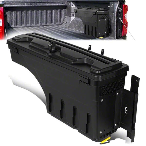 Convenient Storage Solution. The Wheel Well Storage Box is expertly designed for your F-350 Super Duty, offering a practical and secure storage solution specifically for the passenger side of the vehicle. This box is ideal for F-350 Super Duty owners who need extra storage space to keep tools, gear, and other essentials organized and accessible.