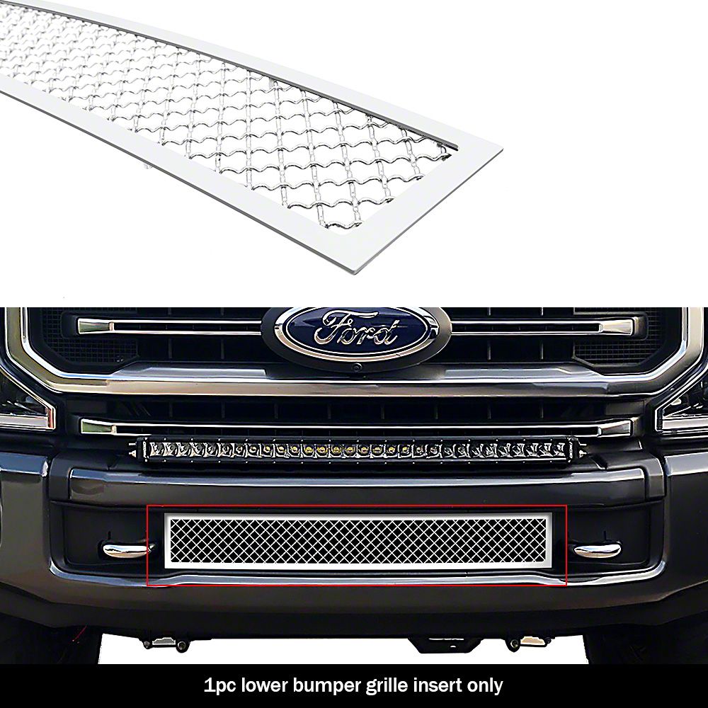 Aggressive Styling With Function. The Wire Mesh Lower Bumper Grille Overlay is a simple yet impactful upgrade that boosts both the visual appeal and performance of your F-350. With a rugged mesh design and polished finish, it not only sharpens the truck's front-end appearance but also promotes better airflow to help maintain engine temperatures and improve overall efficiency. It also offers added protection from debris on and off the road.