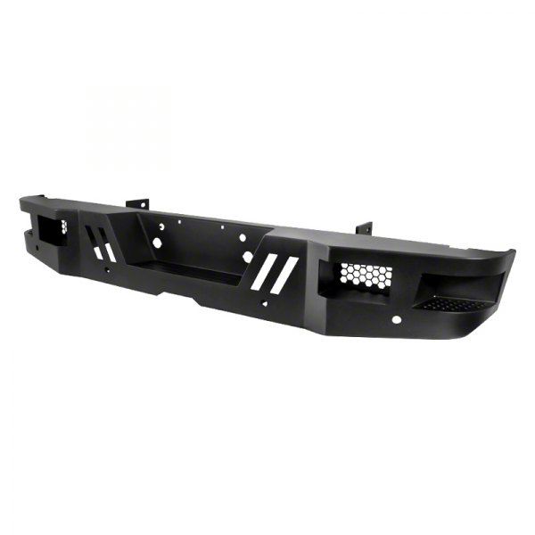 Remarkably Durable. The heavy-duty construction of this Rear Bumper ensures remarkable rear-end toughness. It is manufactured from highly durable, fully welded steel that is designed to withstand brutal driving conditions. Finally, a high-quality black powder-coated finish completes this rear bumper for excellent style and long-lasting protection against corrosion.