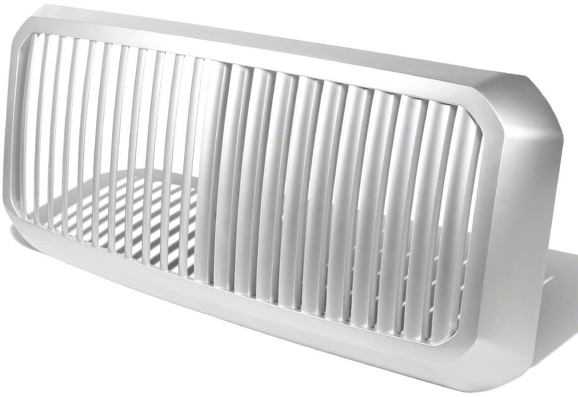 Vertical Style Grille. Transform the front-end of your F-350 Super Duty with this striking Grille; Vertical Style; ABS; Chrome, meticulously crafted from durable ABS material. This grille is designed to endure the rigors of the road, providing long-lasting performance and maintaining its pristine appearance.