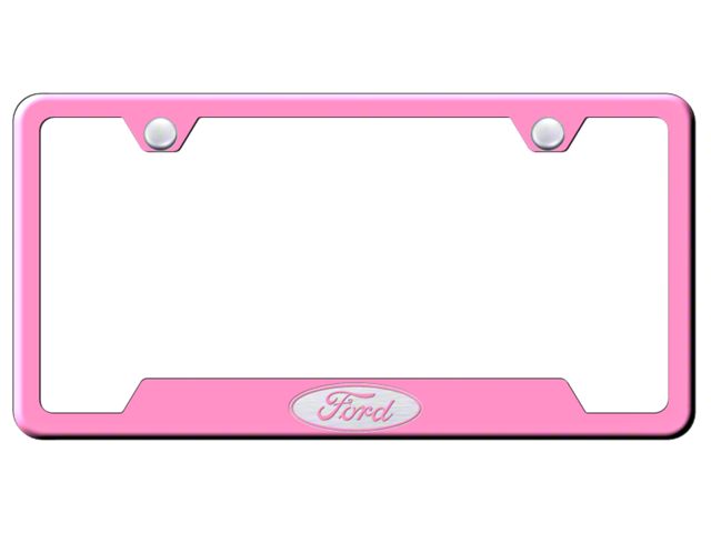 Application. This Ford Logo Only Laser Etched Cut-Out License Plate Frame (Pink) fits universal license plate frames for most vehicles.