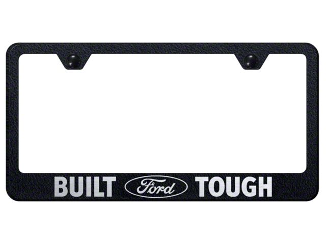 Application. The Built Ford Tough Stainless Steel License Plate Frame features universal fitment but is commonly used with Ford vehicles.