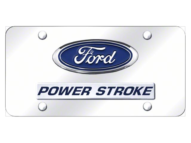 Premium License Plate. The Dual Powerstroke License Plate is designed to enhance the appearance of your vehicle with its OEM-style Ford logo and name bar. It offers a combination of durability and style, making it a must-have for Ford enthusiasts who want to showcase their pride while maintaining a sleek, modern look.