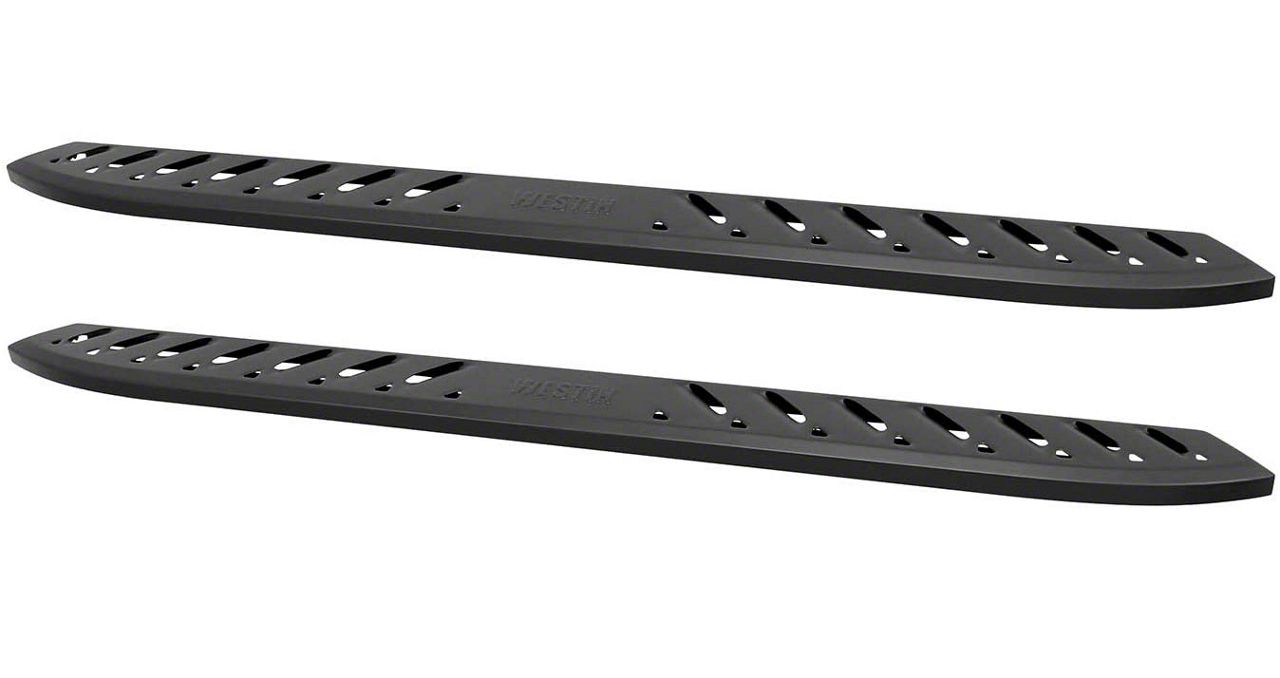 Adds Style and Functionality. Westin Thrasher Boards feature a rugged 1-piece stamped steel construction and indented louvers along the step area for maximum traction. An aggressive pre-runner style design and textured black powder coat finish combined to create a distinctive product that stands out from the crowd. The mounting brackets come with injection-molded covers for a more attractive appearance.