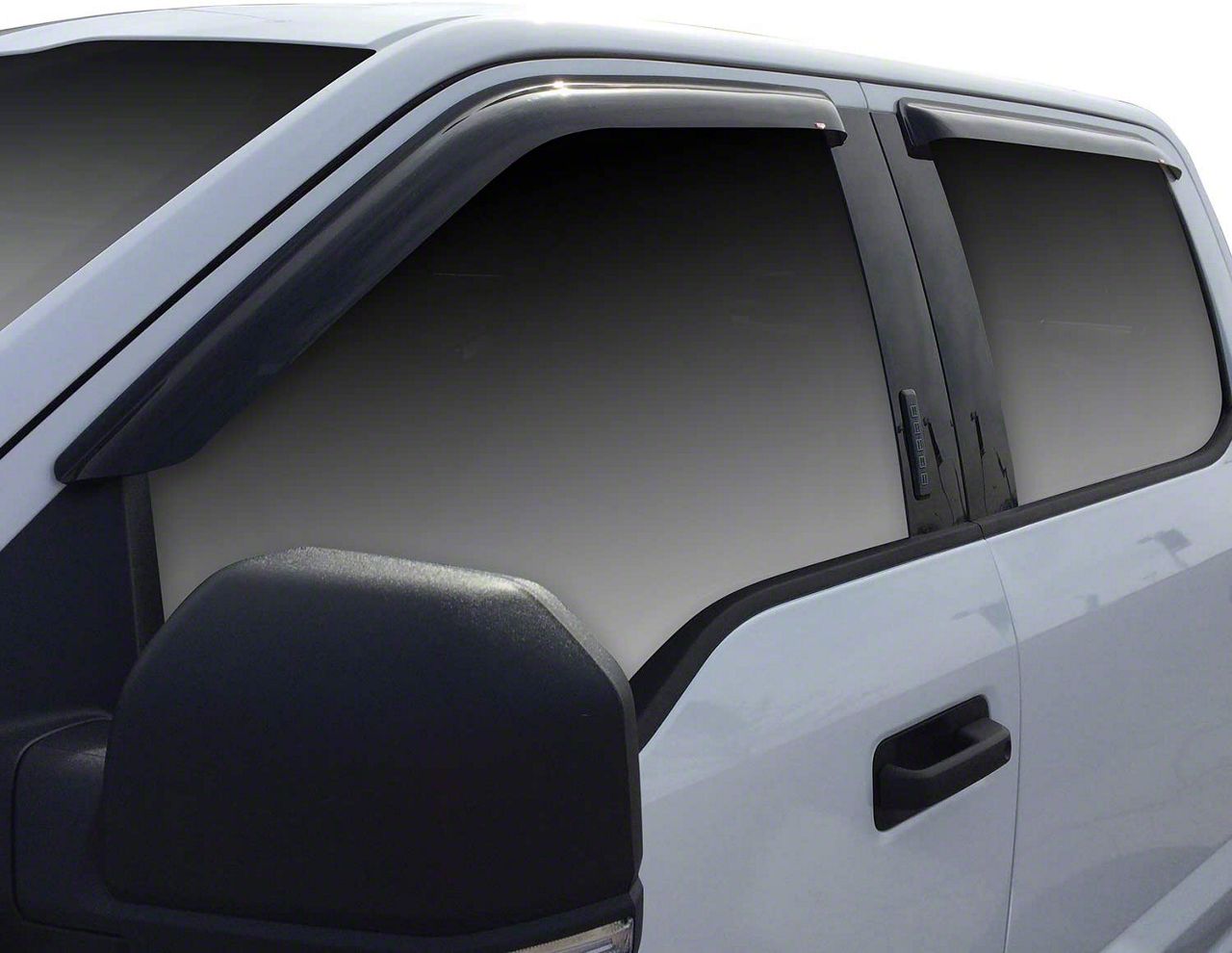 Application. These Side Window Deflector; Slim Wind Deflector; Smoked; 4-Piece; For SuperCrew fits all 2017-2026 F-350 Super Duty SuperCrew models.