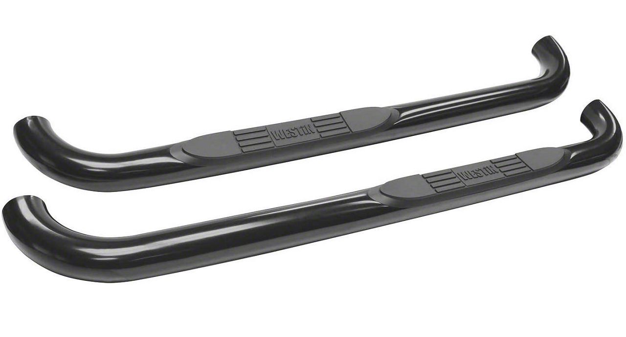 Construction and Appearance. Manufactured from premium-grade 3-inch round steel, these side step bars boast a corrosion- and rust-resistant composition for long-lasting durability. Produced in a state-of-the-art facility with strict attention to detail, they meet or exceed industry-leading quality and safety standards. What's more? The bars feature injection molded polymer step pads and a recessed step area, providing secure footing and ease of access.