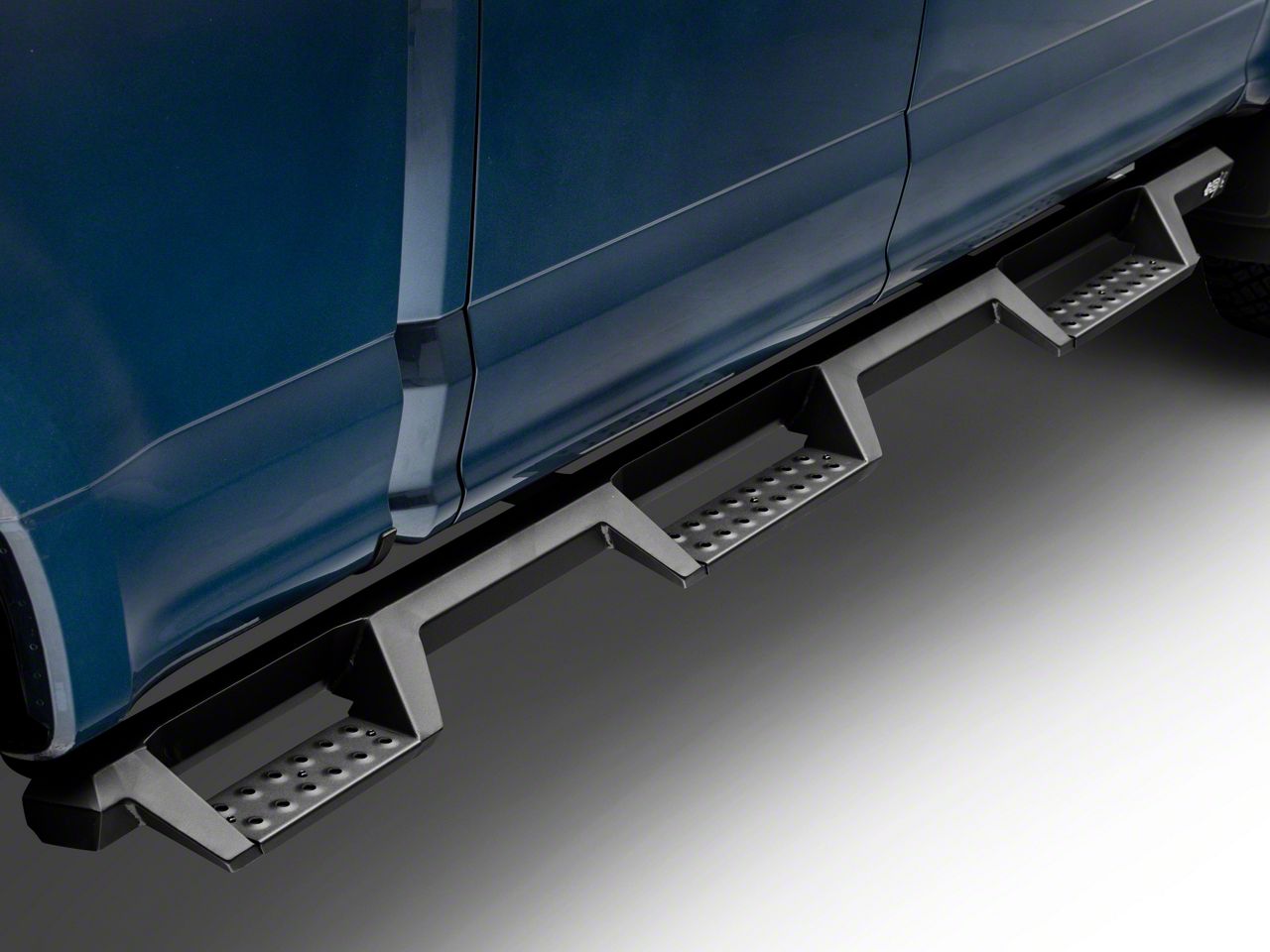 Easier Vehicle Access. Make getting in and out of your 2017-2026 SuperCrew Super Duty much easier by installing a set of HDX Wheel-to-Wheel Drop Nerf Side Step Bars. Compared to other side step bars, these HDX Nerf Bars with their drop step design offer more flexibility when entering your Super Duty. While the convenient third step allows for easier access to your F-250's bed.
