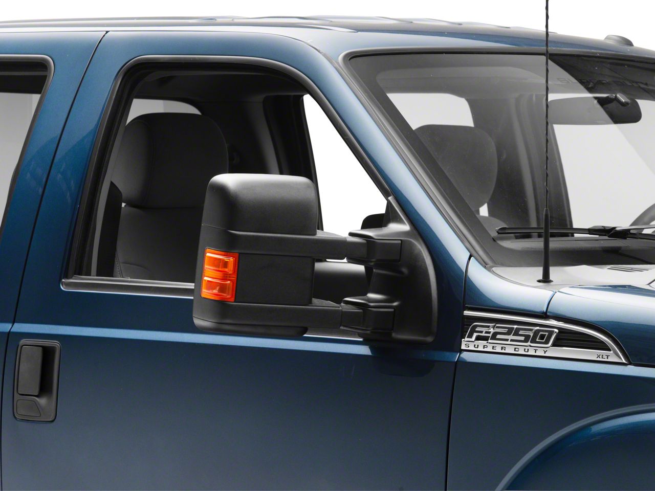 Application. The Powered Heated Towing Mirror with Amber LED Turn Signal; Black; Passenger Side fits 2011-2016 F-350 Super Duty Model.
