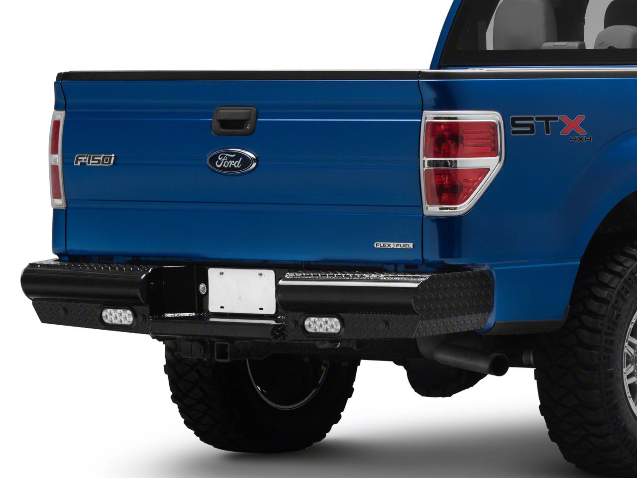 Stylish and Durable. Made for the Ford F-150, this Fab Fours Bumper comes in a stylish matte black finish. Built from steel, this rear bumper has a unique design with no vertical flanges and tapered edges that match your ride’s bodywork.