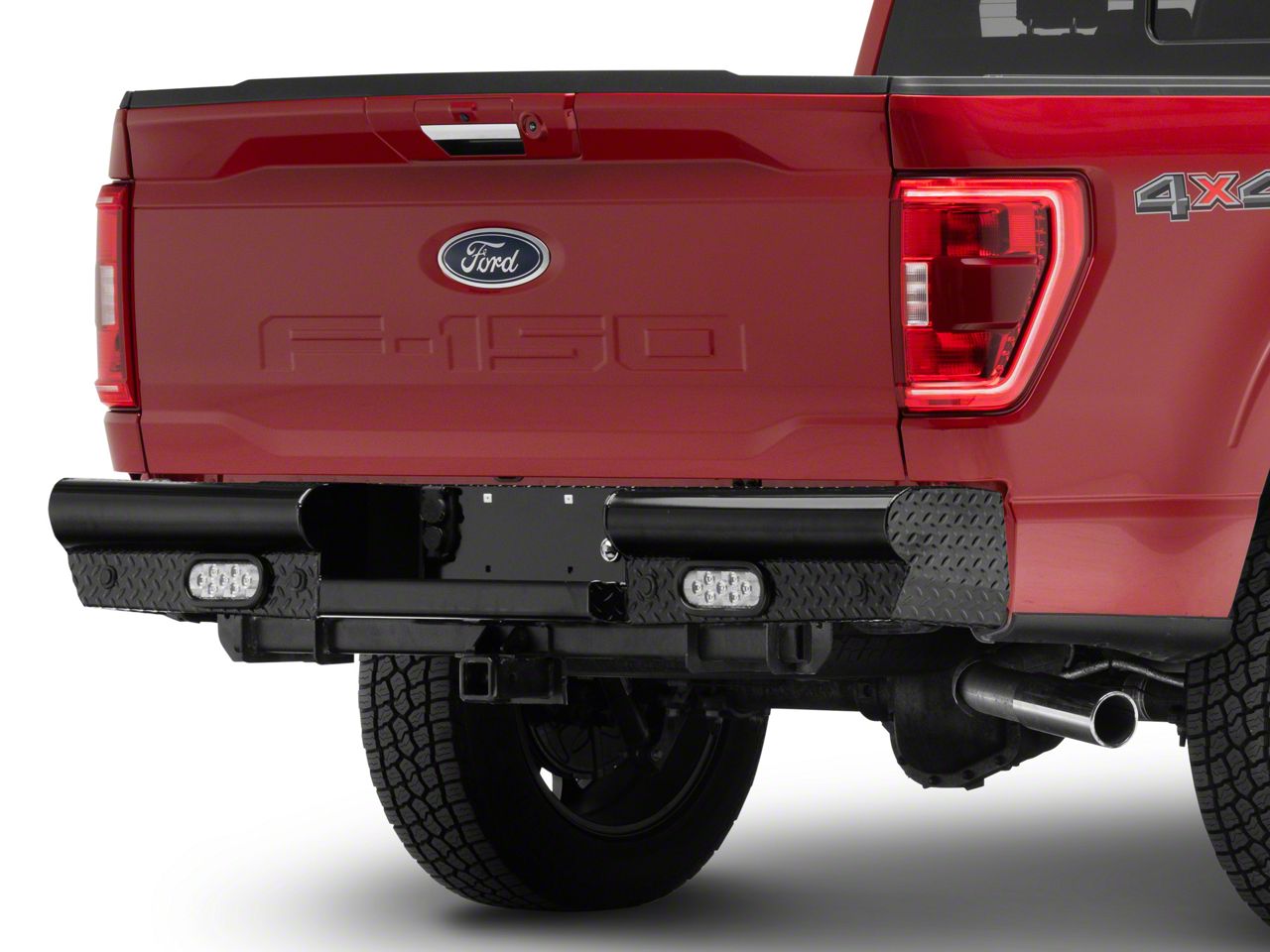 Extreme Backside Coverage. Bulwark your backside with the Fab Fours Black Steel Rear Bumper, designed to add rugged defense to your assembly while perfectly matching your Ford's off-road aesthetics. No need to worry about rubble and rocks denting or damaging your tailgate since this powerful bumper piece can withstand any hit with ease.