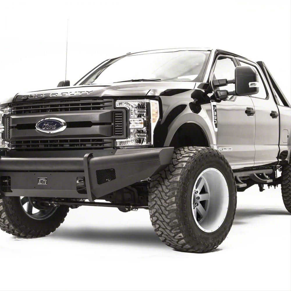 Application. The Fab Fours Black Steel Elite Front Bumper with No Guard fits all 2017-2022 F-250 Super Duty Models.