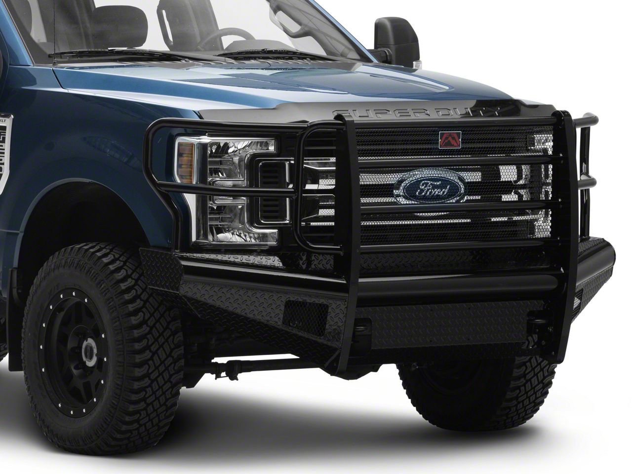 Application. This Fab Fours Black Steel Ranch Front Bumper with Full Guard; Matte Black is designed to fit 2017-2022 Ford F-250 Super Duty models.