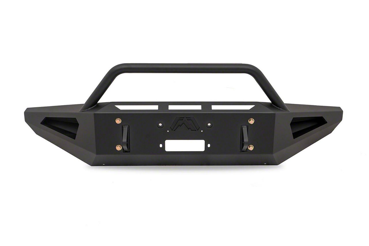 Long-Lasting Composition. This Fab Fours Red Steel Front Bumper with Pre-Runner Guard boasts an aggressive design and a sleek matte black finish, enhancing your vehicle's aesthetics. It's resistant to rust and corrosion, ensuring longevity under tough conditions.