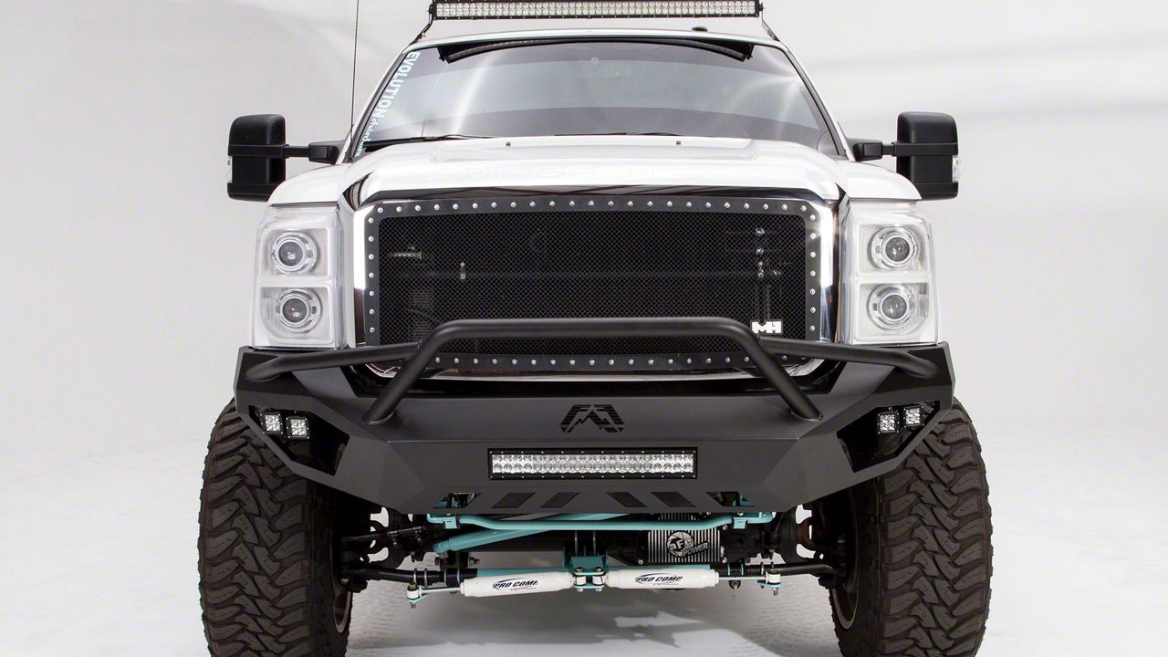 Application. The Fab Fours Vengeance Front Bumper with Pre-Runner Guard; Matte Black fits 2011-2016 Ford F-250 Super Duty Models.