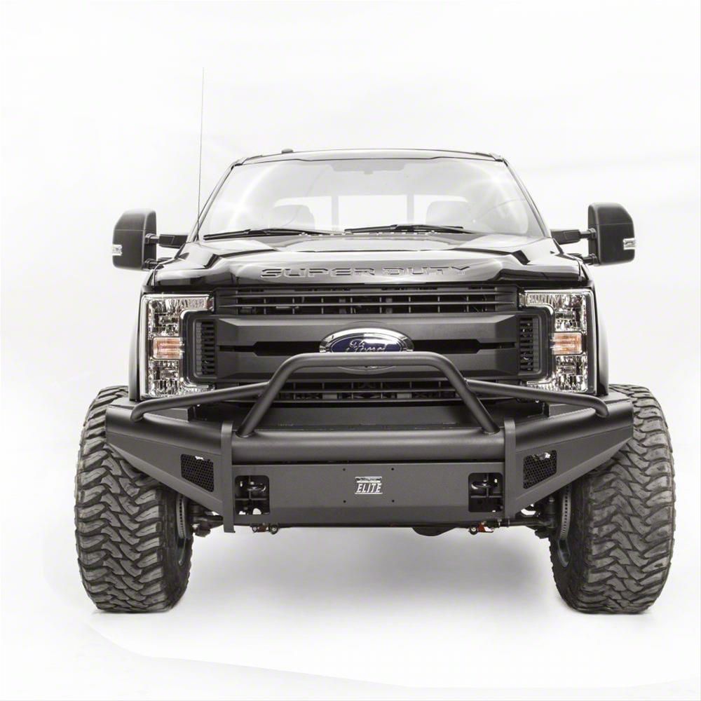 Application. This Fab Fours Black Steel Elite Front Bumper with Pre-Runner Guard in Matte Black fits all 2017-2022 Ford F-350 Super Duty models.