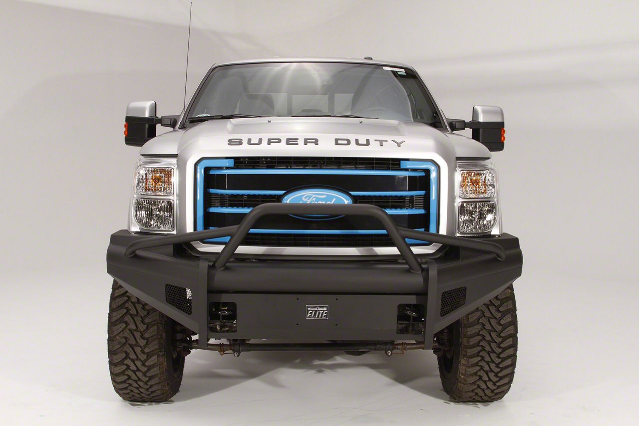 Heavy-Duty Front-End Protection. The Fab Fours Black Steel Elite Front Ranch Bumper is designed to provide unmatched strength and protection for your Ford F-350 Super Duty. Engineered to withstand tough impacts, this bumper shields your vehicle from road debris, bumps, and other hazards. Featuring a full guard and tow hooks, it enhances both functionality and rugged aesthetics, making it an ideal upgrade for work trucks and off-road applications.