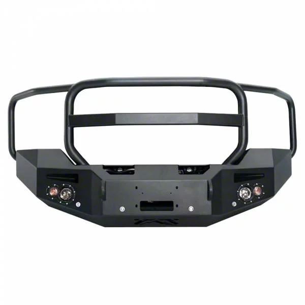 Ultimate Front End Protection. Safeguard your F-350 Super Duty with the Fab Fours Premium Heavy Duty Winch Front Bumper with Full Guard; Matte Black. With a full guard design, it provides comprehensive protection to your vehicle's front end, shielding it from off-road obstacles, wildlife, and potential collisions. Designed with winching in mind, this bumper is equipped to handle large frame winches. It empowers you with the ability to tackle challenging situations and recover with confidence, making it a valuable addition to your F-350.