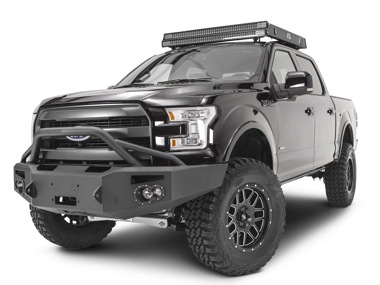 Heavy-Duty Bumper with Multiple Functions. A big, beefy component that’s meant to strongly armor the front of your 2015-2017 F-150 against all kinds of hazards, the Fab Fours Premium Winch Front Bumper with Pre-Runner Guard is meant to give you the freedom to go on the adventures you wouldn’t with a less protective bumper attached. Equipped with built-in heavy-duty clevis mounts to accept D-rings and able to support a winch with up to 12,000 lbs capacity, this bumper also excels at getting you out of tight spots and continuing on safely to your destination. This variant includes a pre-runner style guard, a grille protecting hoop with an extra reinforcing tube buttressing either side. Add in the integrated fog and turn signal lights and the better than stock tire clearance, and you have a winning bumper design that will carry you successfully along just about any trail in North America.