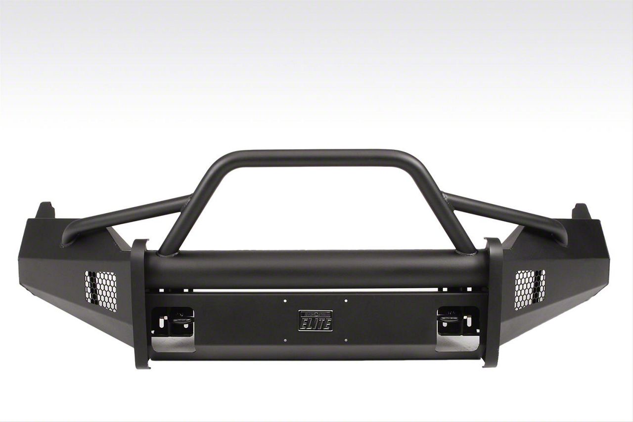 Convenient. Auxiliary off-road lights can be mounted on some models of this Fab Fours Black Steel Elite Front Bumper's integrated lighting options for better visibility when off-roading at night. Exploring difficult terrain is made safer and more convenient by this feature.
