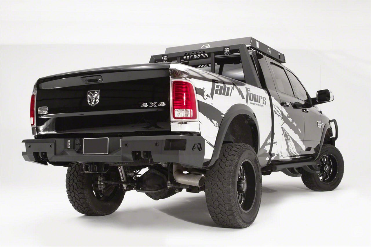 Application. This Fab Fours Premium Rear Bumper Pre-Drilled for Backup Sensors in Matte Black is designed to fit all 2009 to 2018 RAM 1500 with Factory Dual Exhaust models.