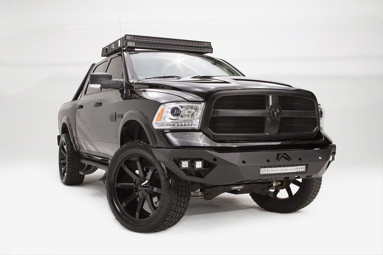 Application. This Fab Fours Vengeance Front Bumper with No Guard in Matte Black is created to fit 2013-2018 RAM 1500 models, excluding Express, Rebel, and Sport vehicles.