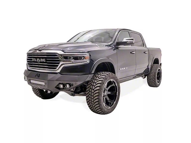 Application. This Fab Fours Vengeance Front Bumper with No Guard and Matte Black finish is engineered to fit 2019-2024 RAM 1500 models, excluding Rebel and TRX vehicles.