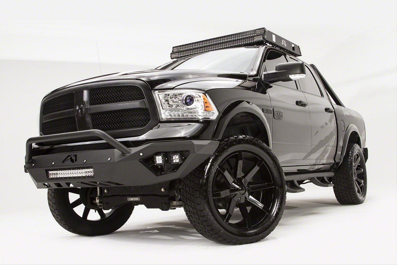 Application. This Fab Fours Vengeance Front Bumper with Pre-Runner Guard in Matte Black is designed to fit 2013-2018 RAM 1500 models, excluding Express, Rebel, and Sport vehicles.