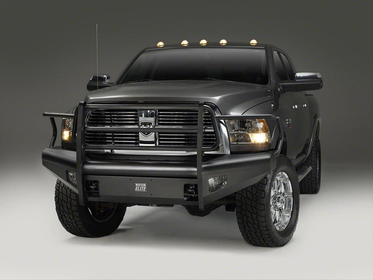 Heavy-Duty Utility. Be prepared for anything the terrain has to throw at you and guard yourself and your RAM 2500 with this Fab Fours Black Steel Elite Front Bumper with Full Guard; Matte Black made from hard steel, it offers superior durability with aggressive styling as well as a usefulness on the job with support for medium-duty winches, perfect for helping out in recovery tasks.