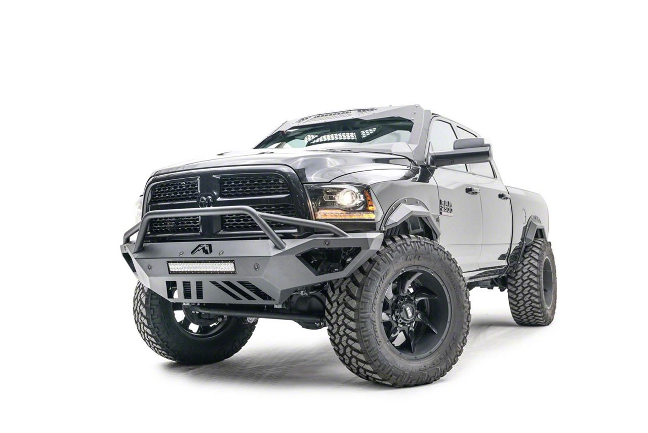 Application. This Fab Fours Open Fender Front Bumper with Pre-Runner Guard fits 2016-2018 RAM 2500.