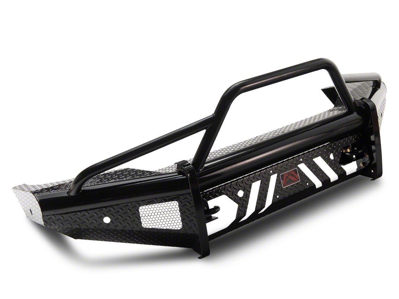 Purpose Built Design. The Fab Fours Black Steel Front Bumper with Pre-Runner Guard gives the "ranch" bumper design and combined it with the smooth plate look from their premium line. No grill mesh and premium powder coat give the Elite bumpers a unique look. Like all Fab Fours' products they matched every bumper to the body lines of each model truck.