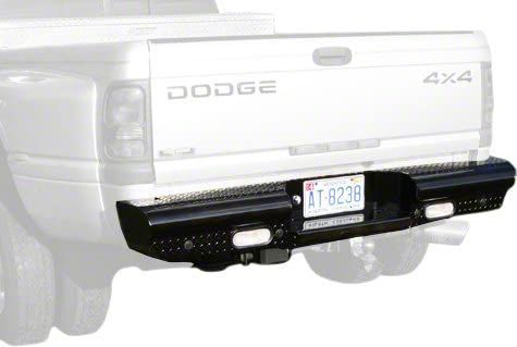 Field-Inspired Bumper. Go Ranch-style even in the trails with the Fab Fours Black Steel Rear Bumper in Matte Black. This rear bumper comes in a ranch-style design with a steel tread plate. It also features LED reverse and LED tag lights. The OEM receiver hitch and wiring location will be retained after upgrading this bumper.