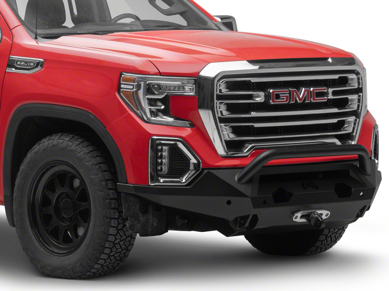 Application. This Fab Fours Matrix Winch Front Bumper with Pre-Runner Guard in Bare Steel is designed for use on all 2019-2021 GMC Sierra 1500 models, excluding Diesel variants.